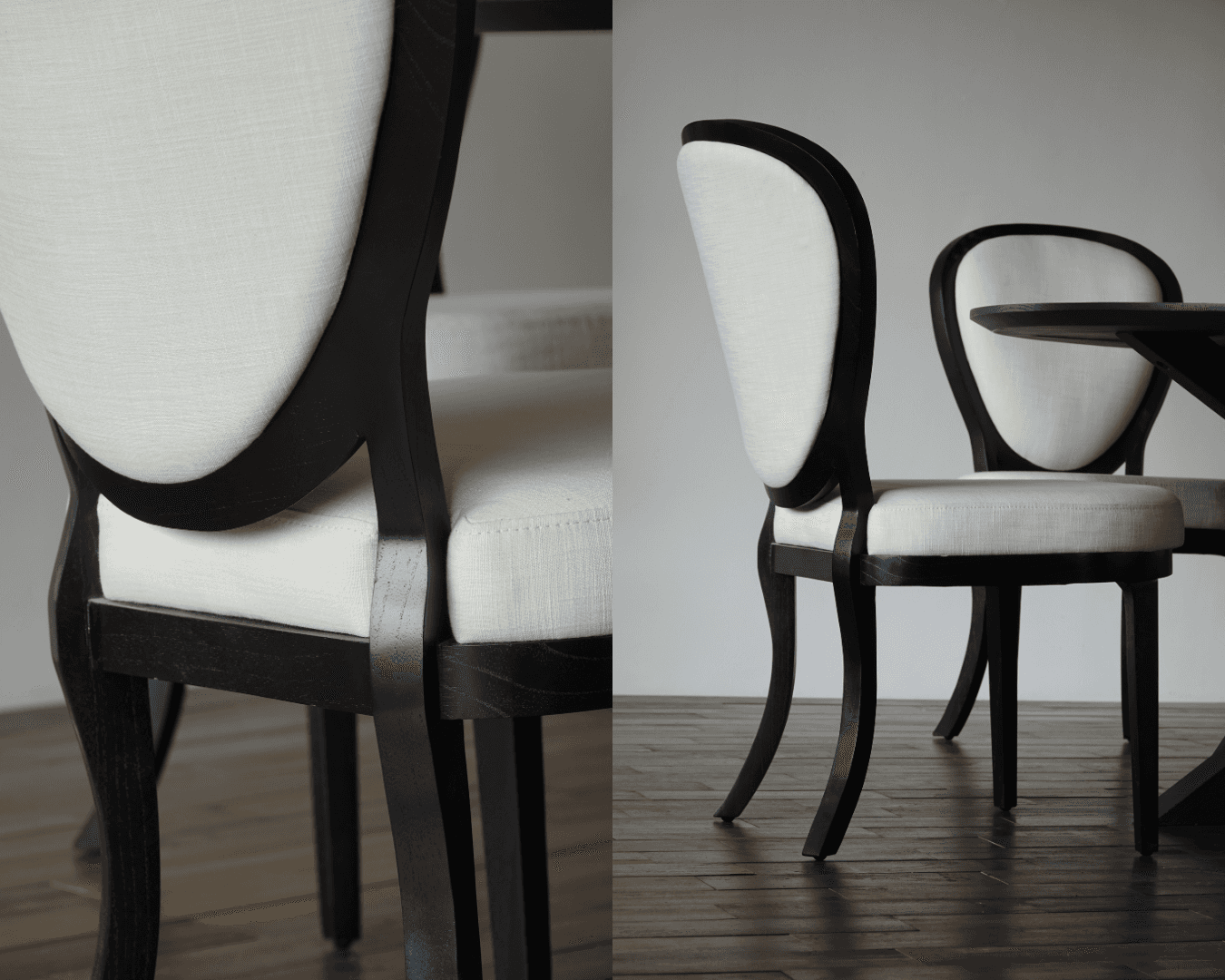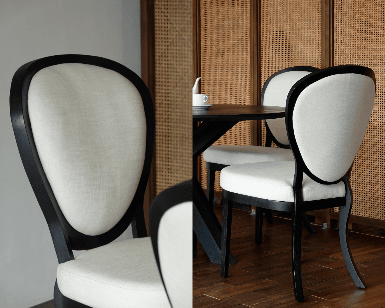 Kursi Medallion dikenal melalui sandaran ovalnya yang elegan dan proporsi kaki yang ramping. Pada proyek kediaman pribadi di Jakarta ini, desain klasik tersebut kami hadirkan dalam interpretasi yang lebih kontemporer. Finishing hitam matte membingkai secara tegas, menghadirkan karakter yang bold dan architectural tanpa menghilangkan kelembutan garis aslinya. Upholstery berwarna terang dipilih sebagai kontras yang menyegarkan, di mana kekuatan siluet berpadu dengan kelembutan yang menenangkan.